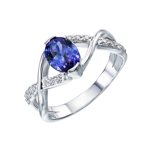 Кольцо с бриллиантами и танзанитом Золото 585 белое