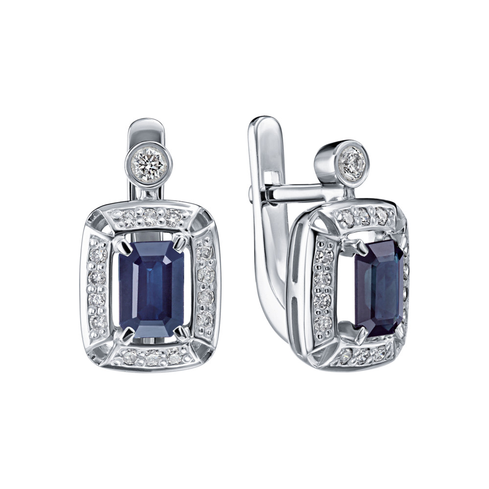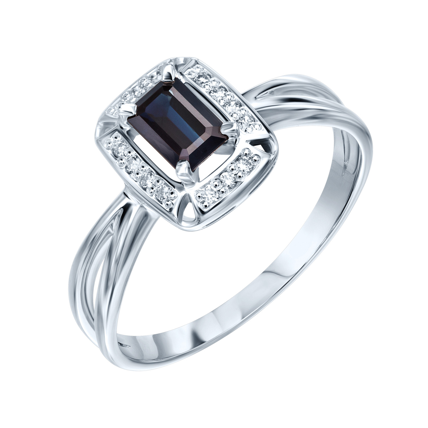 Кольцо с бриллиантами и сапфиром Золото 585 белое