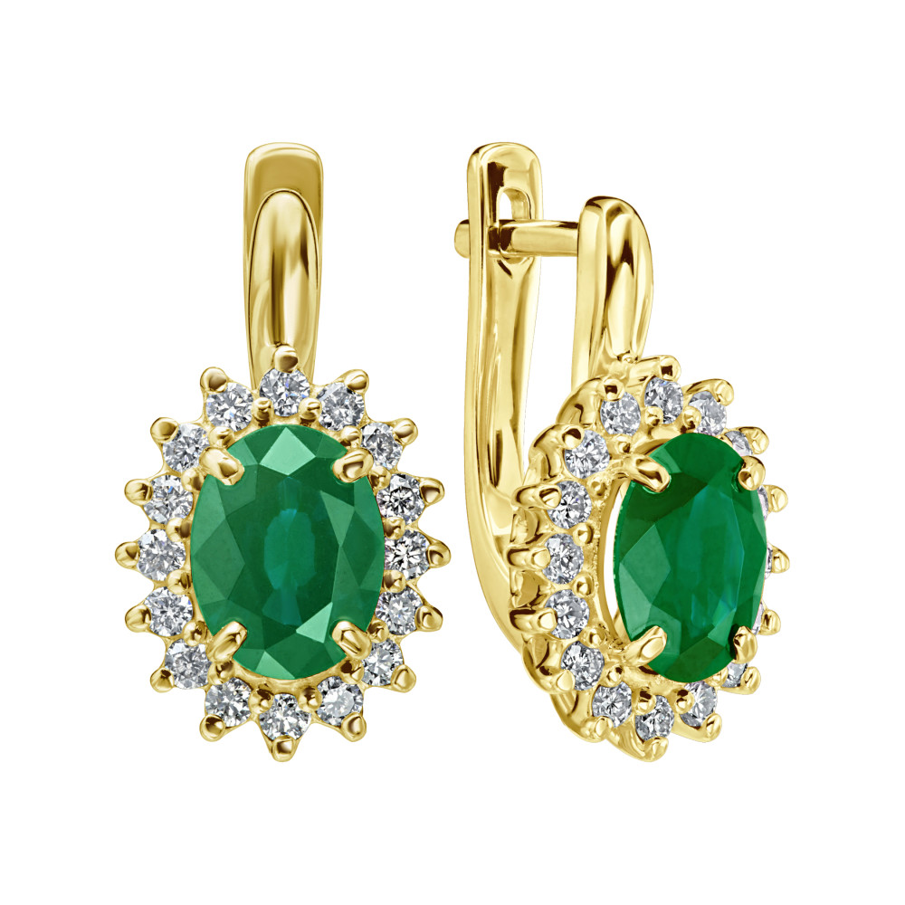 Кольцо с бриллиантами и изумрудом Золото 585 зеленое