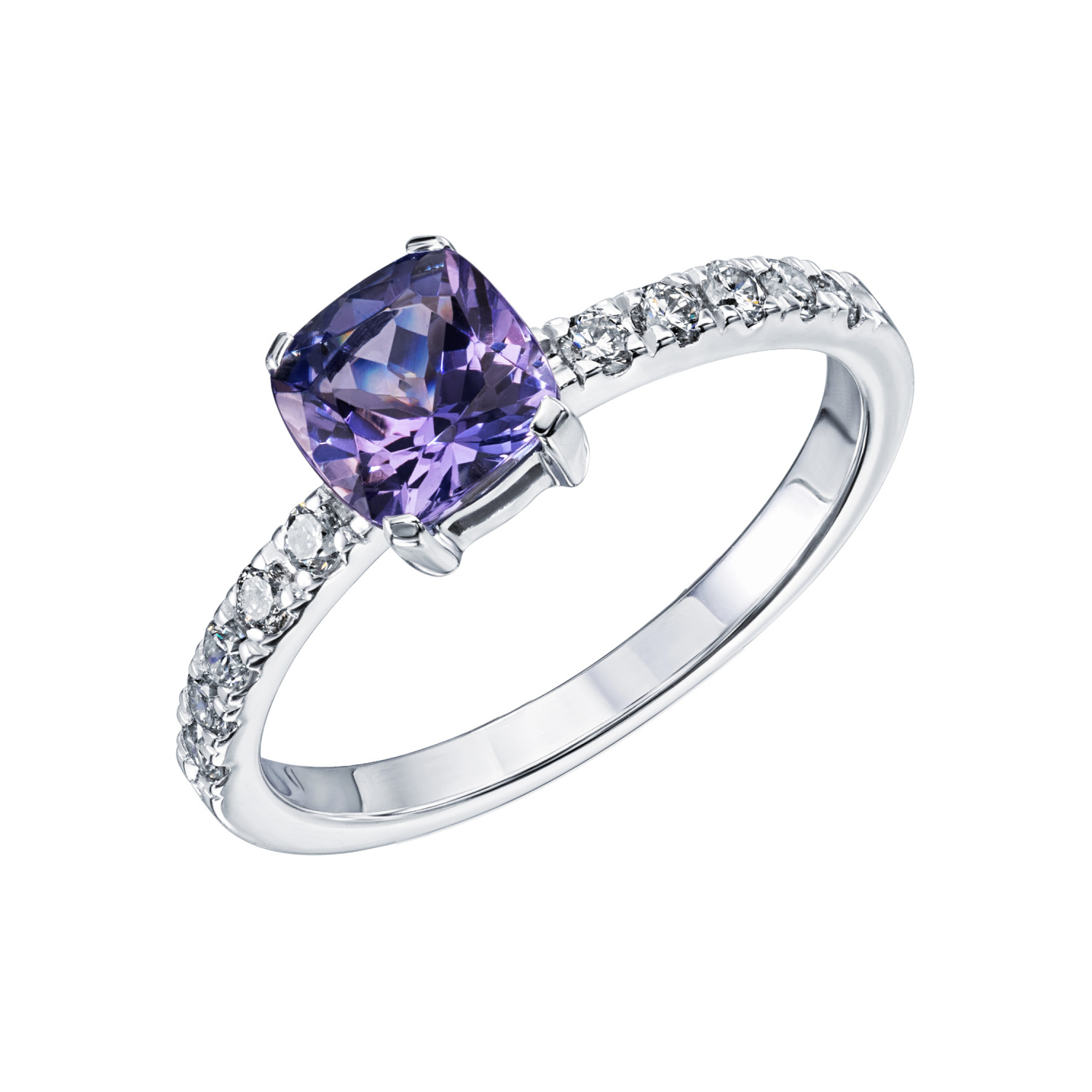 Кольцо с бриллиантами и танзанитом "Антик" Золото 585 белое