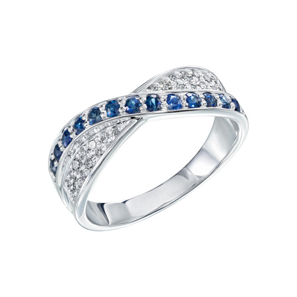 Кольцо с бриллиантами и сапфирами Золото 585 белое