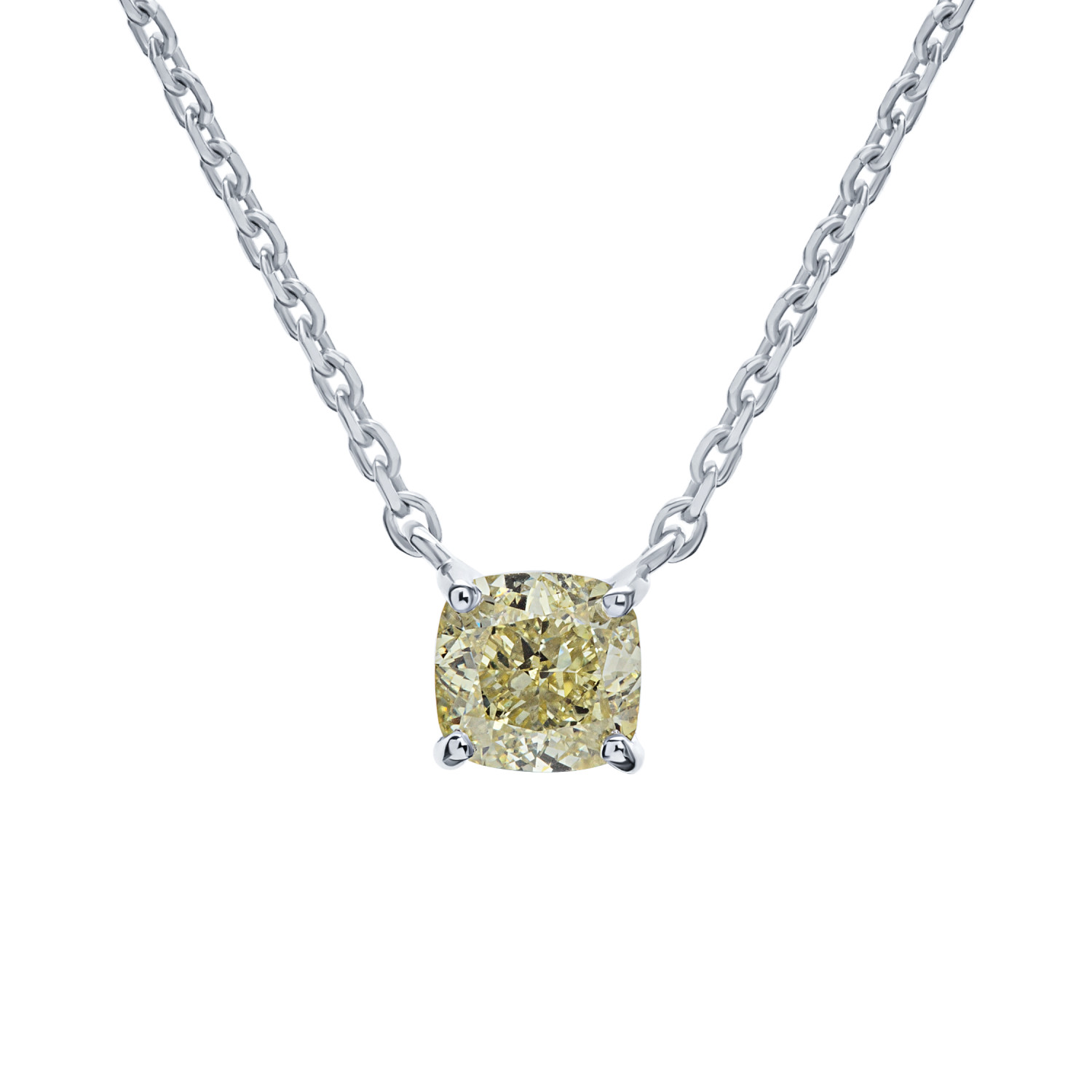 Колье с желтым бриллиантом Кушон Золото 585 белое