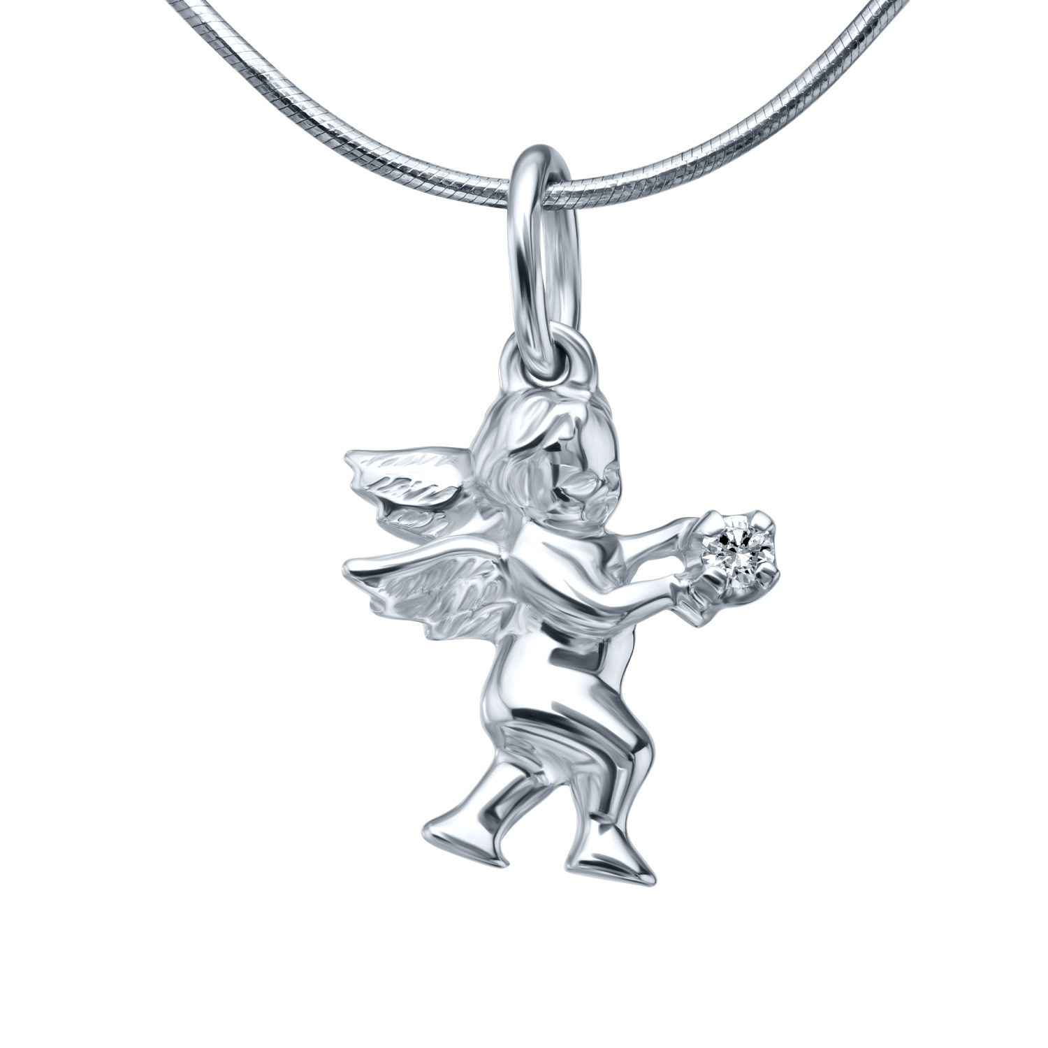 Подвеска Ангел с бриллиантом Золото 585 белое