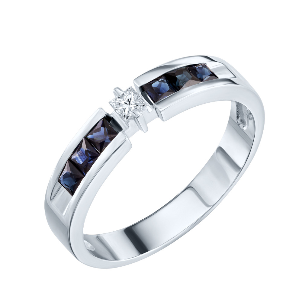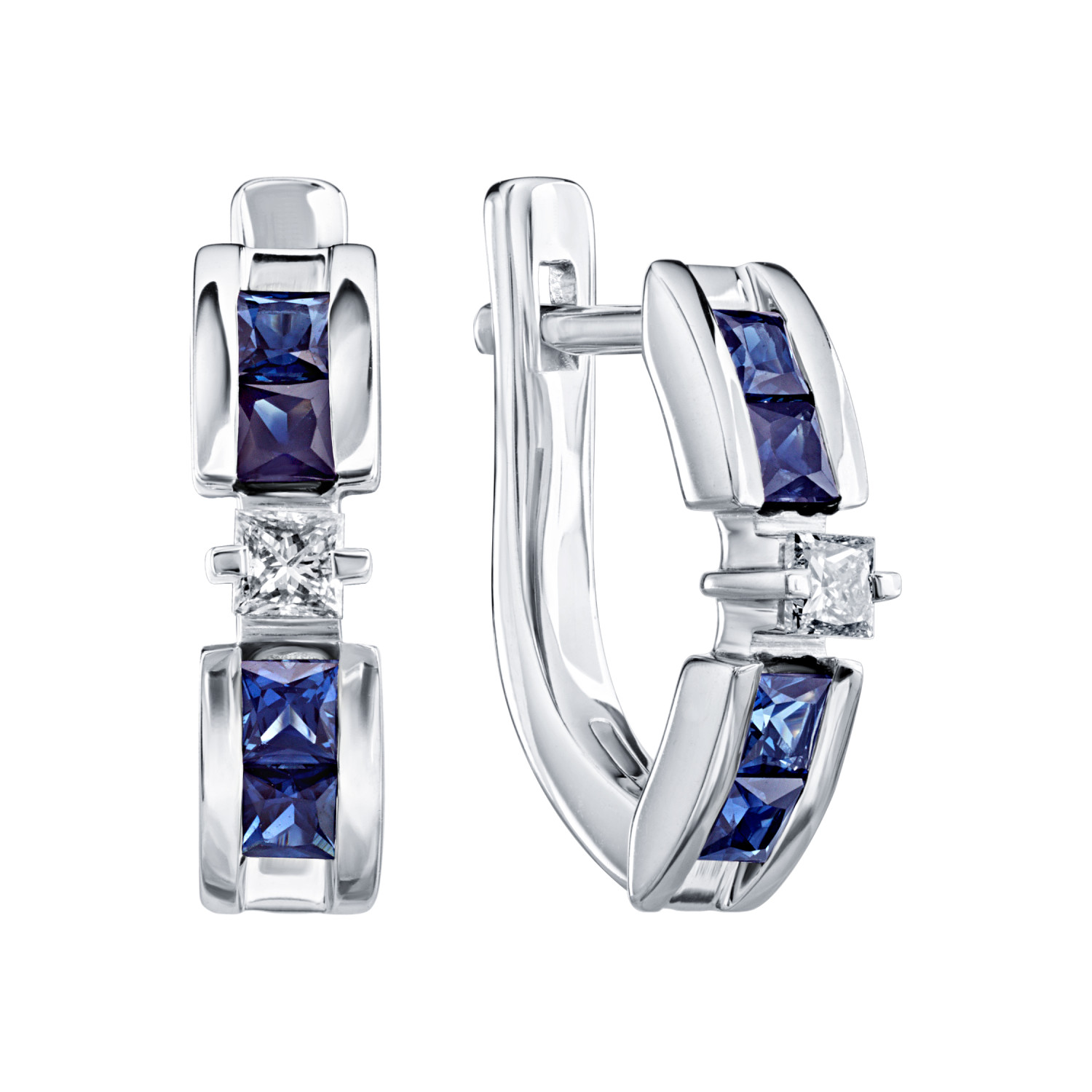 Серьги с бриллиантами и сапфирами Золото 585 белое