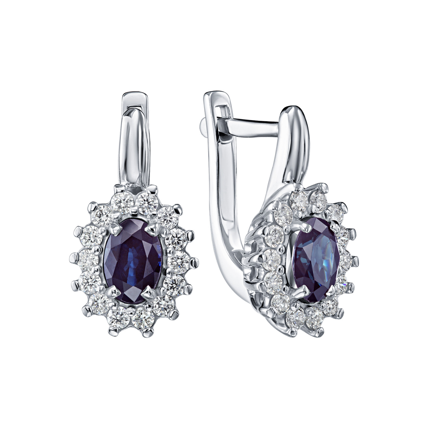 Серьги с бриллиантами и сапфирами Золото 585 белое
