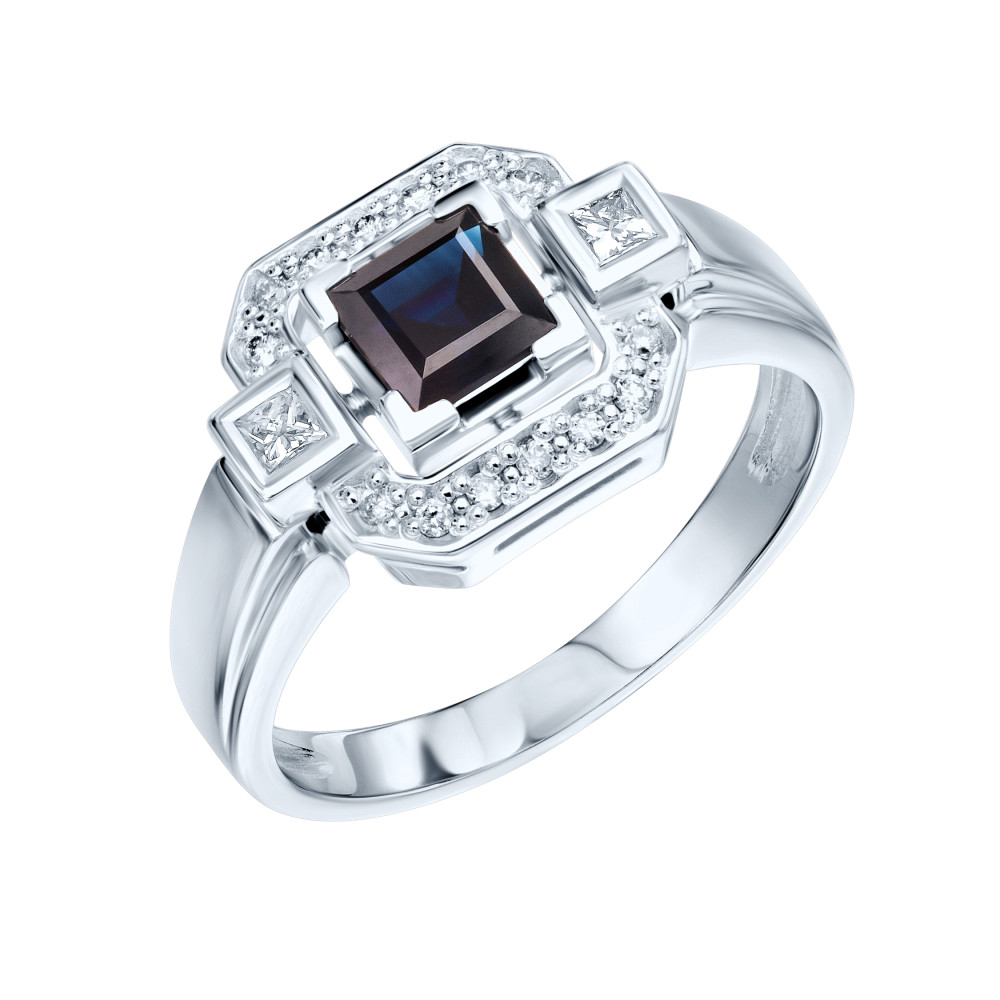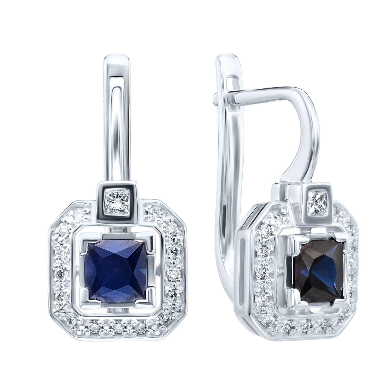 Серьги с бриллиантами и сапфирами Золото 585 белое