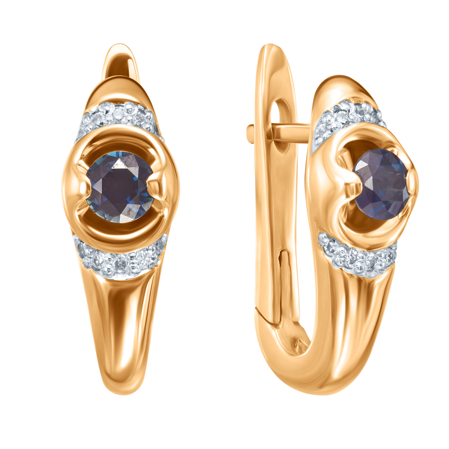 Серьги с бриллиантами и сапфирами Золото 585 красное