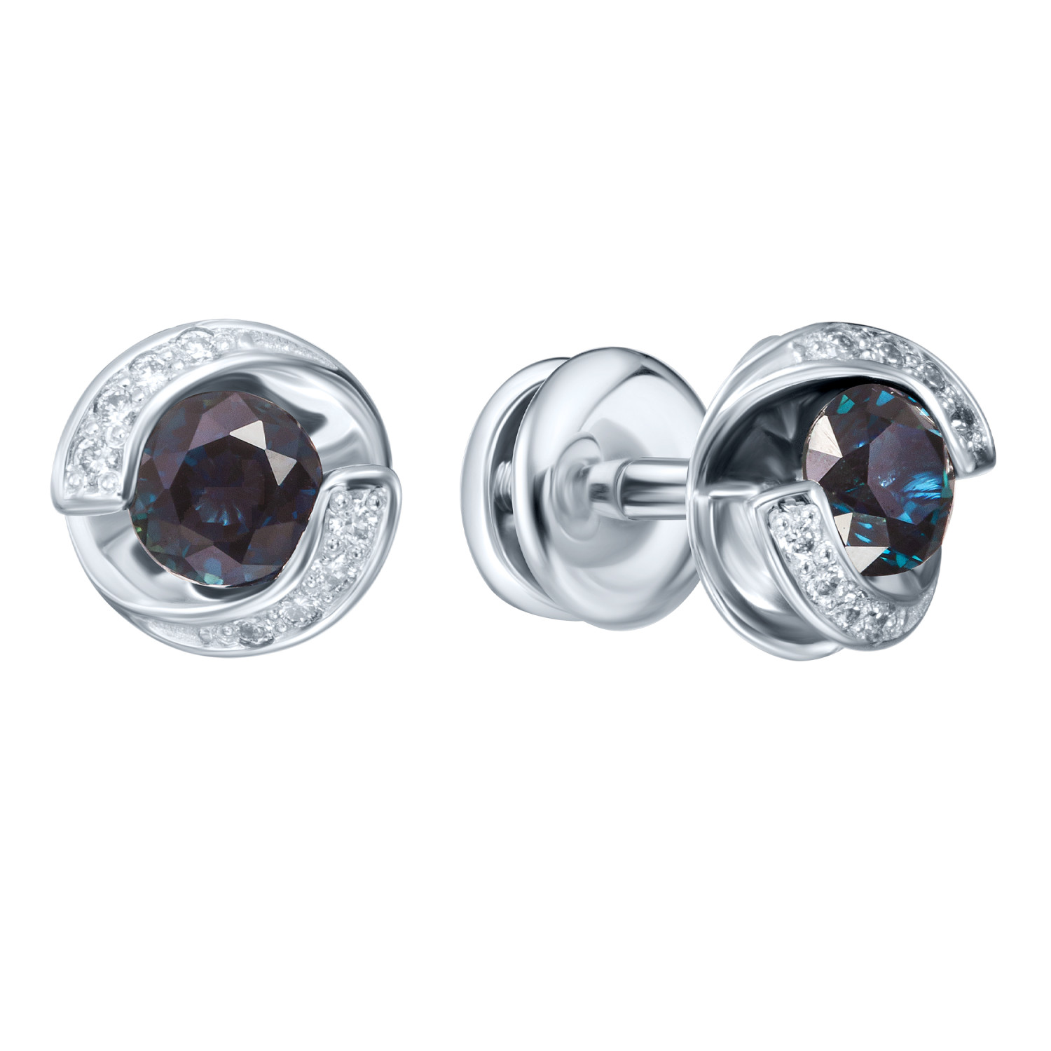 Серьги пусеты с бриллиантами и сапфирами Золото 585 белое