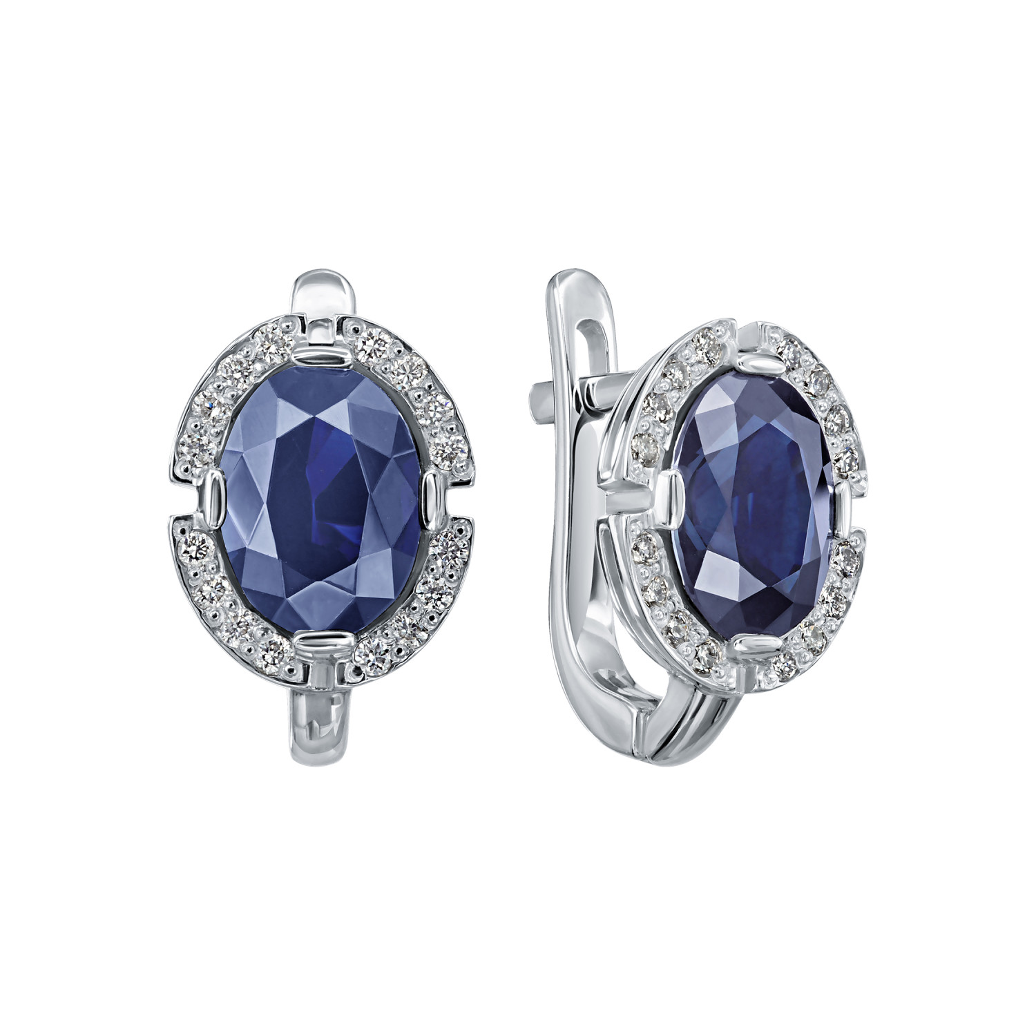 Серьги с бриллиантами и сапфирами Золото 585 белое