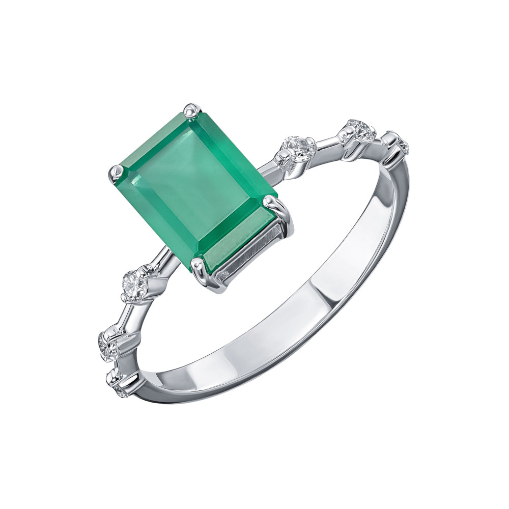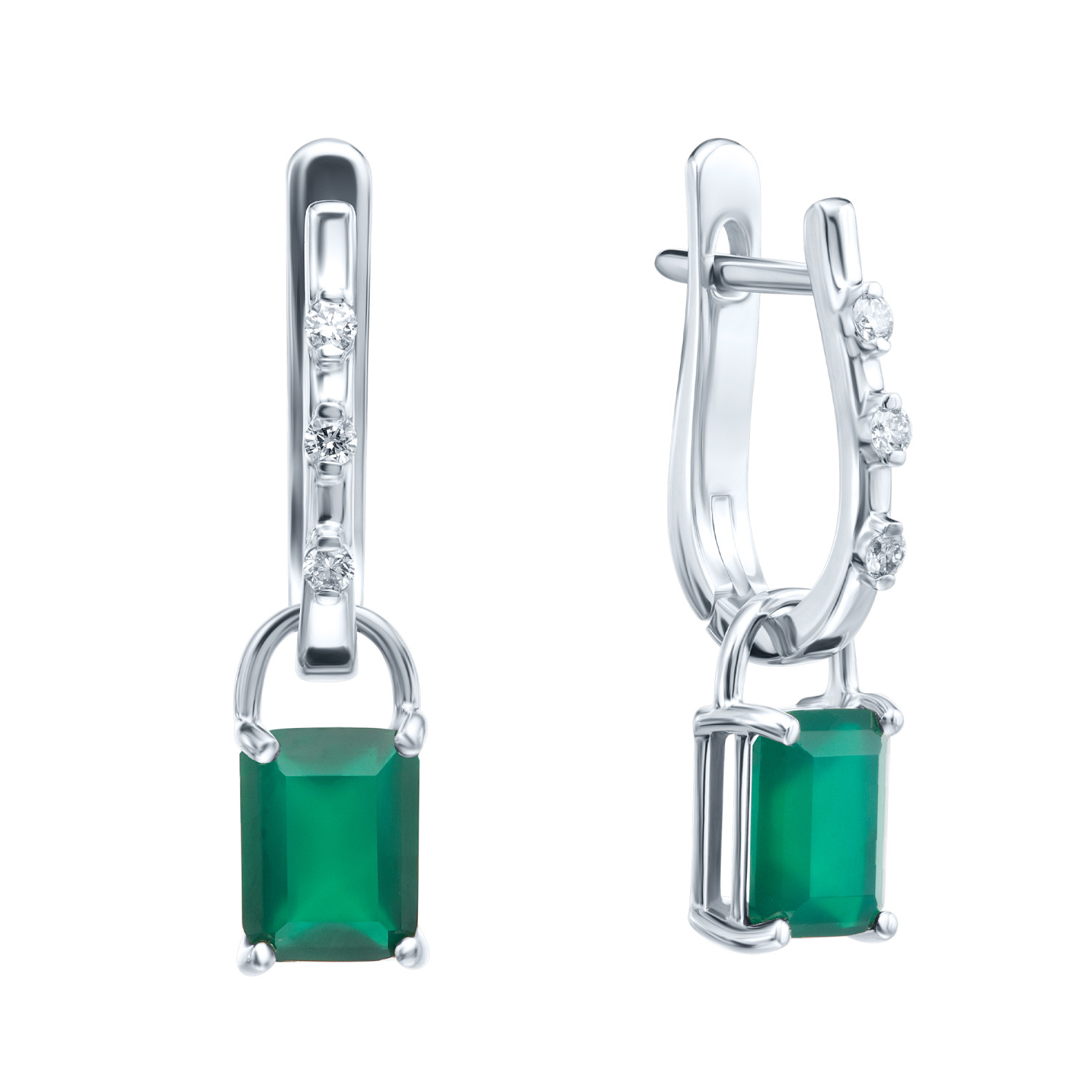 Серьги с бриллиантами и агатами Золото 585 белое