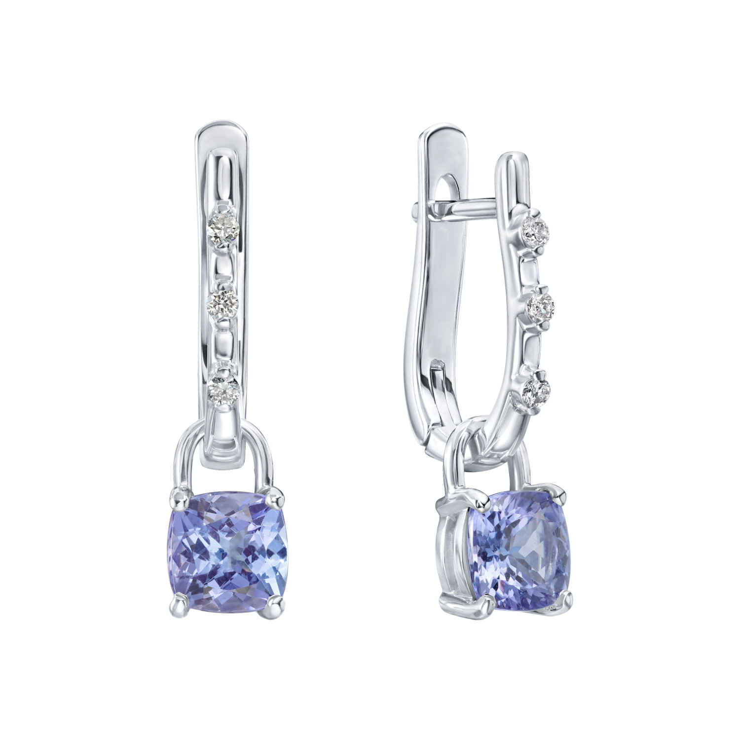Серьги с бриллиантами и танзанитами Золото 585 белое
