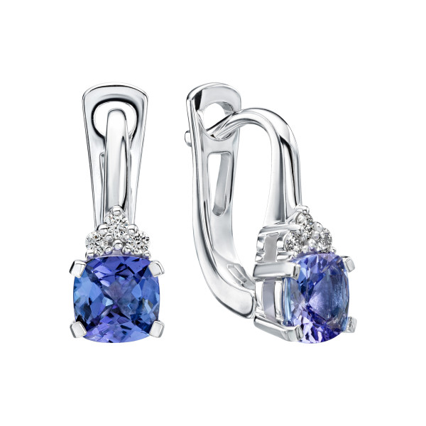 Серьги с бриллиантами и танзанитами Золото 585 белое