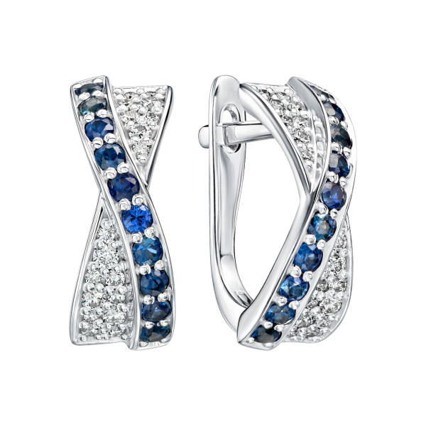 Серьги с бриллиантами и сапфирами Золото 585 белое